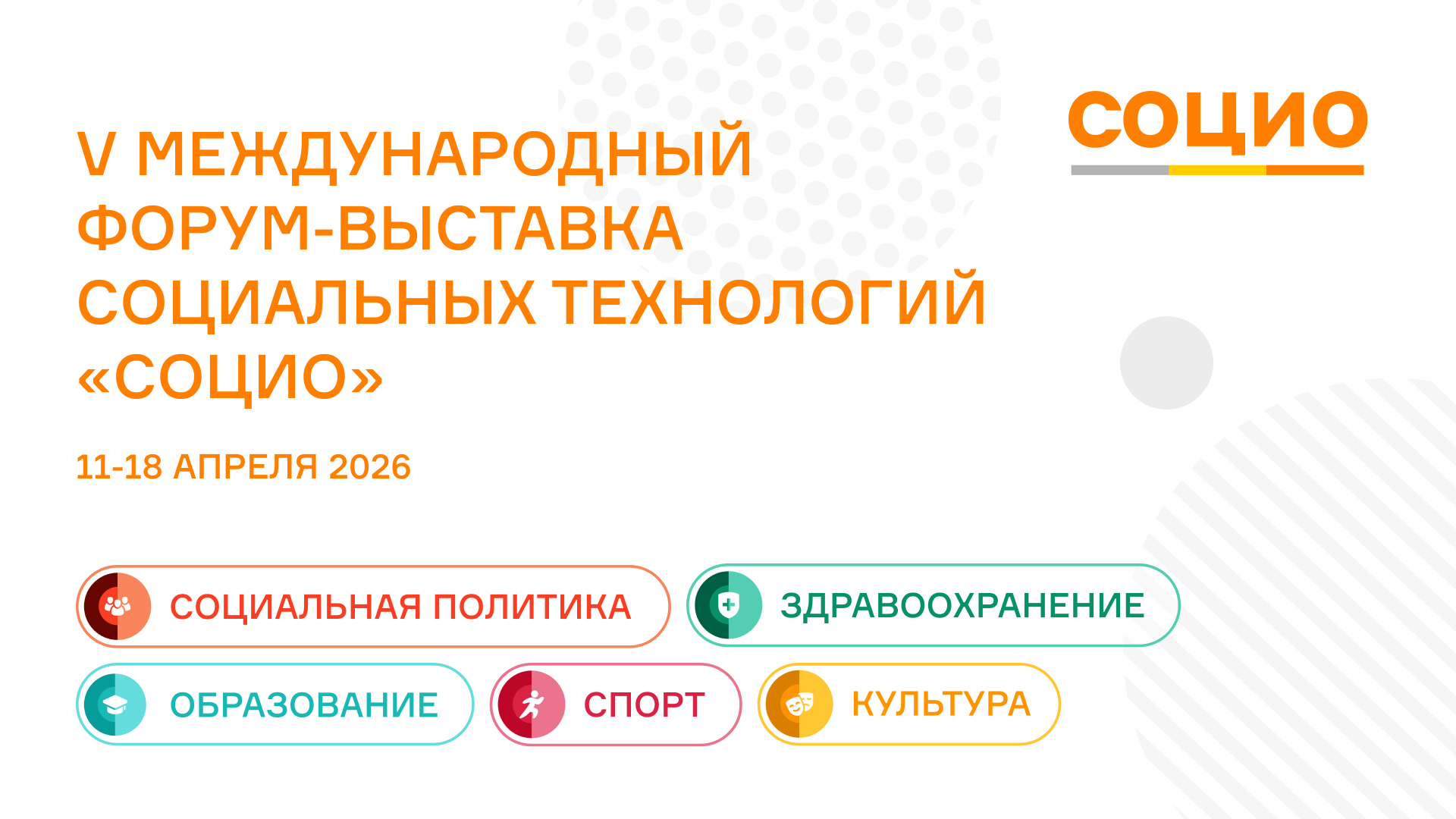 С 11 по 18 апреля 2026 года на нескольких площадках города Екатеринбурга состоится V Международный форум-выставка социальных технологий «СОЦИО».
