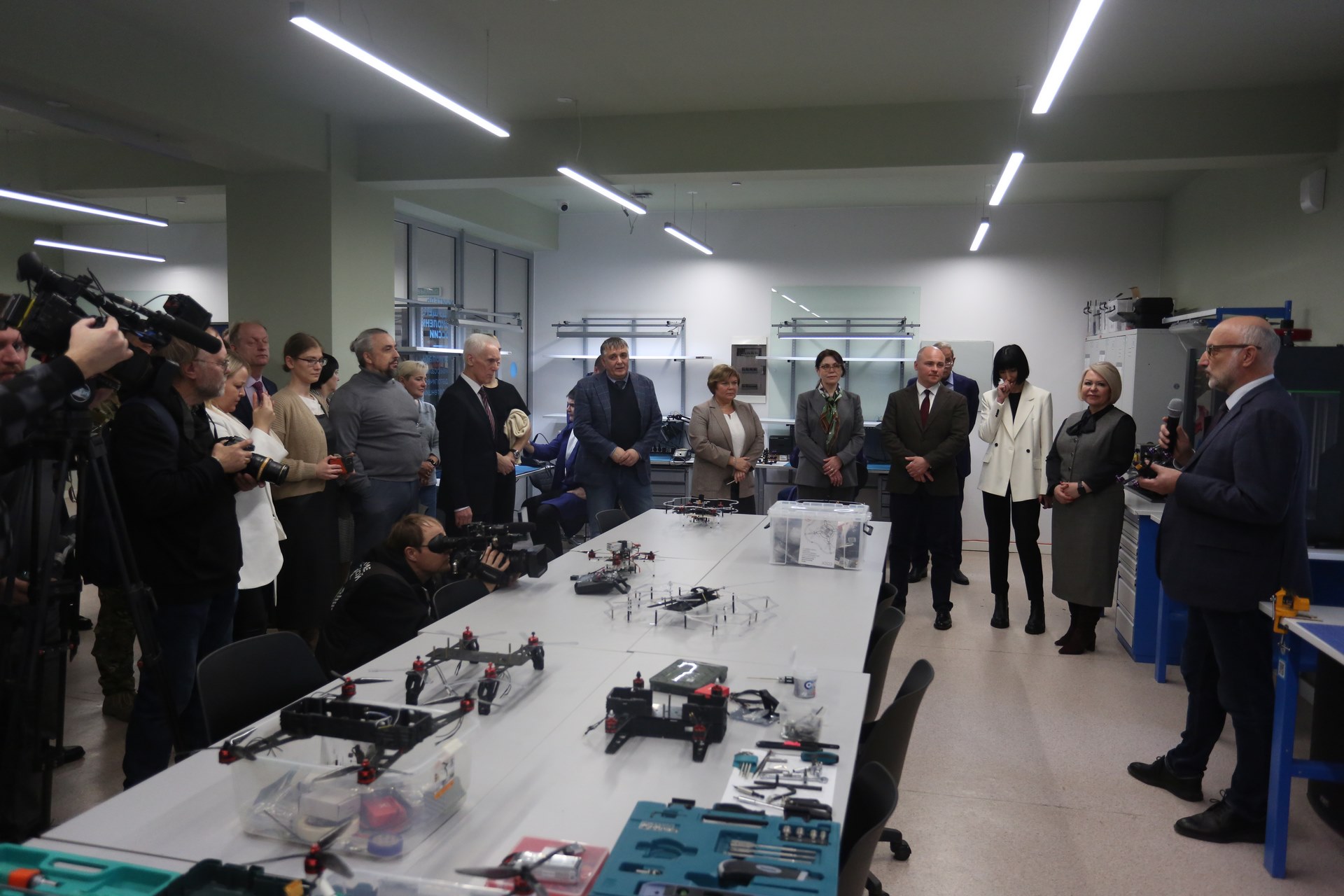 Основатель школы дронов Drontech.pro, доцент Сибирского федерального университета Олег Холкин провёл презентацию первой очереди производственной линии по сборке беспилотных аппаратов. Представители региональных министерств смогли лично поучаствовать в производственном процессе, а также испытать себя в роли операторов беспилотных летательных аппаратов (БПЛА) на профессиональных симуляторах с реалистичной физикой полёта.
